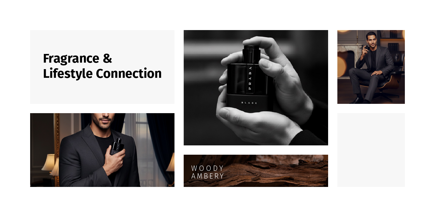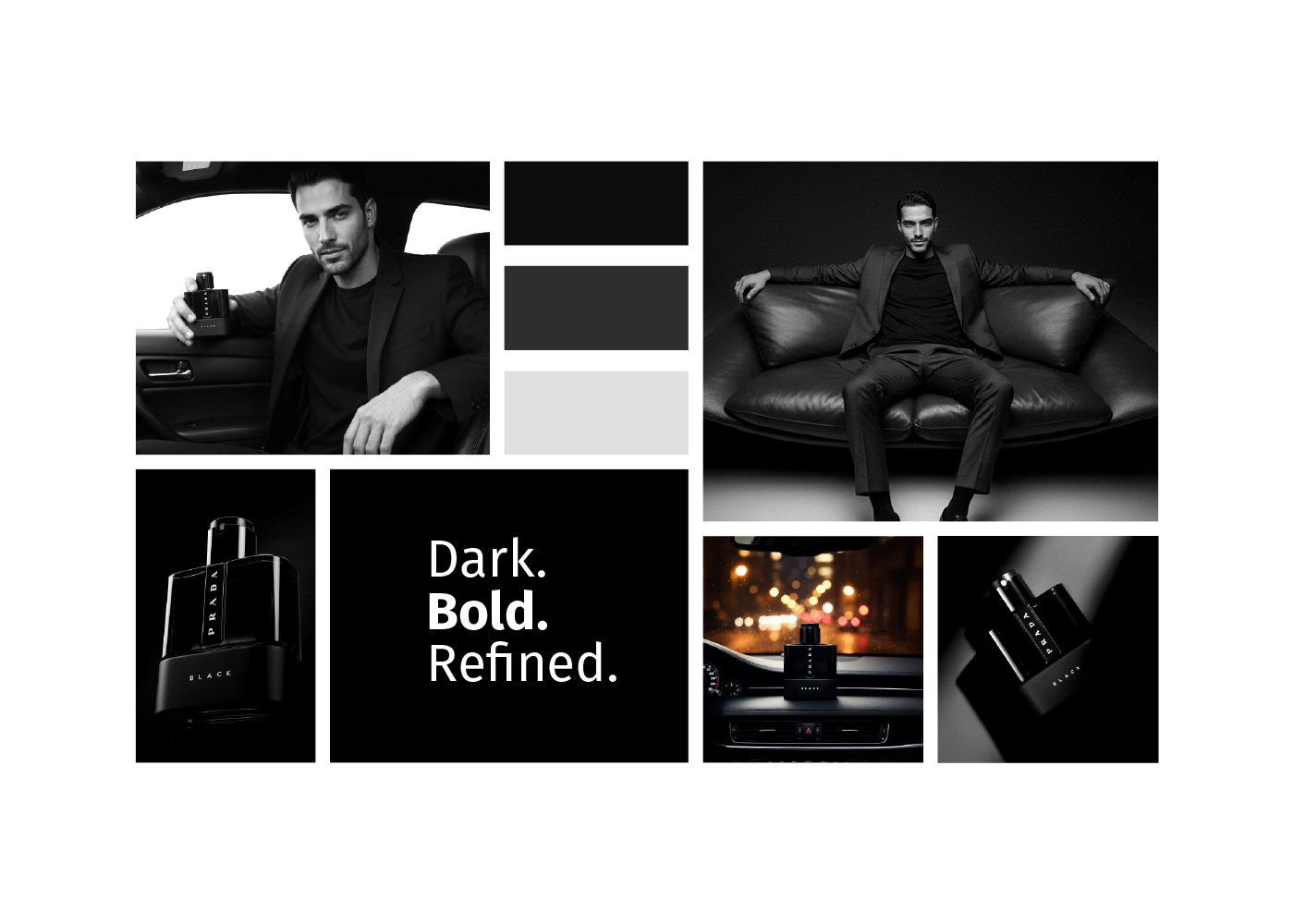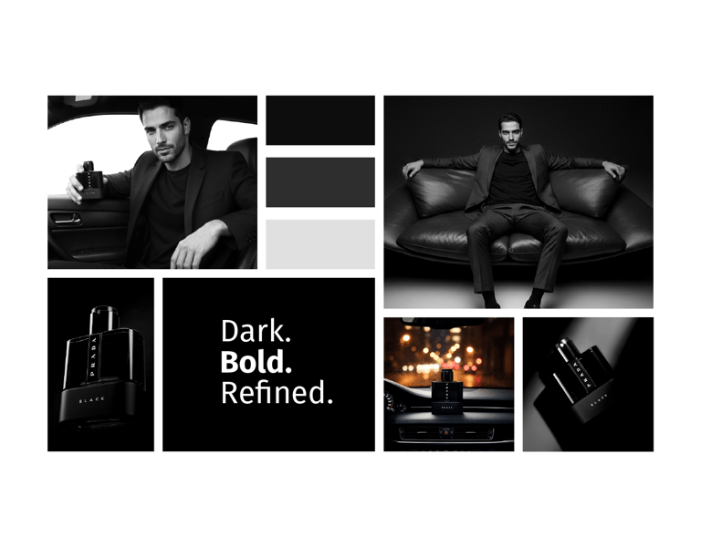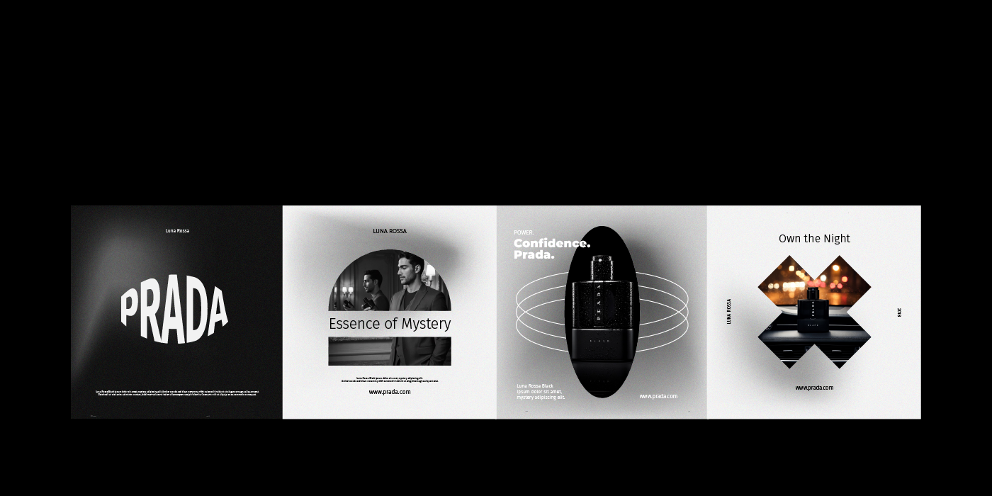 A fragrance that embodies elegance, warmth, and mystery. This visual campaign of 8 artistic concepts explores the identity of Prada Luna Rossa Black through bold contrasts, refined details, and a sophisticated lifestyle aesthetic. From close-up luxury shots to cinematic lifestyle scenes, the campaign captures the essence of a fragrance designed for the modern man — confident, charismatic, and timeless.