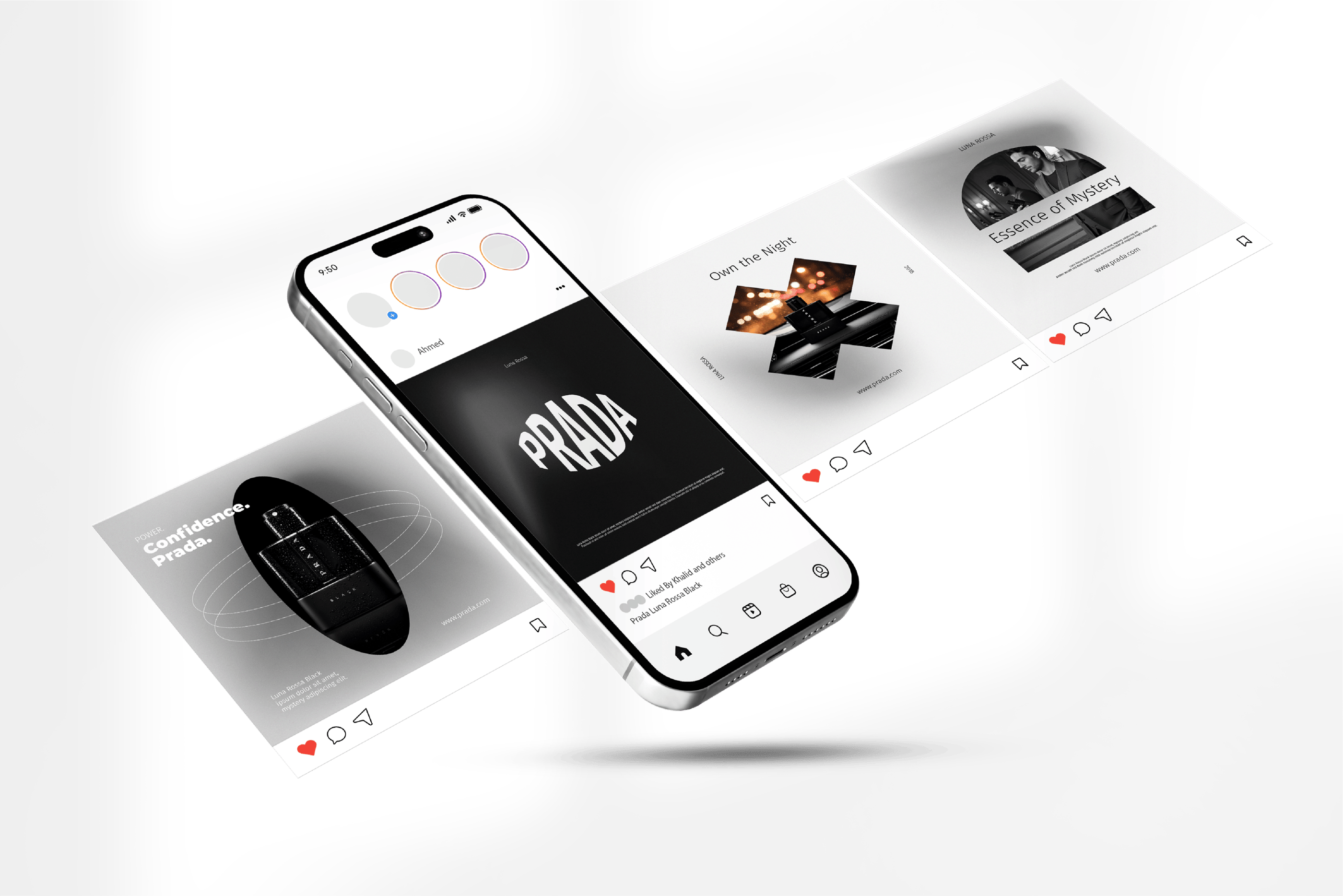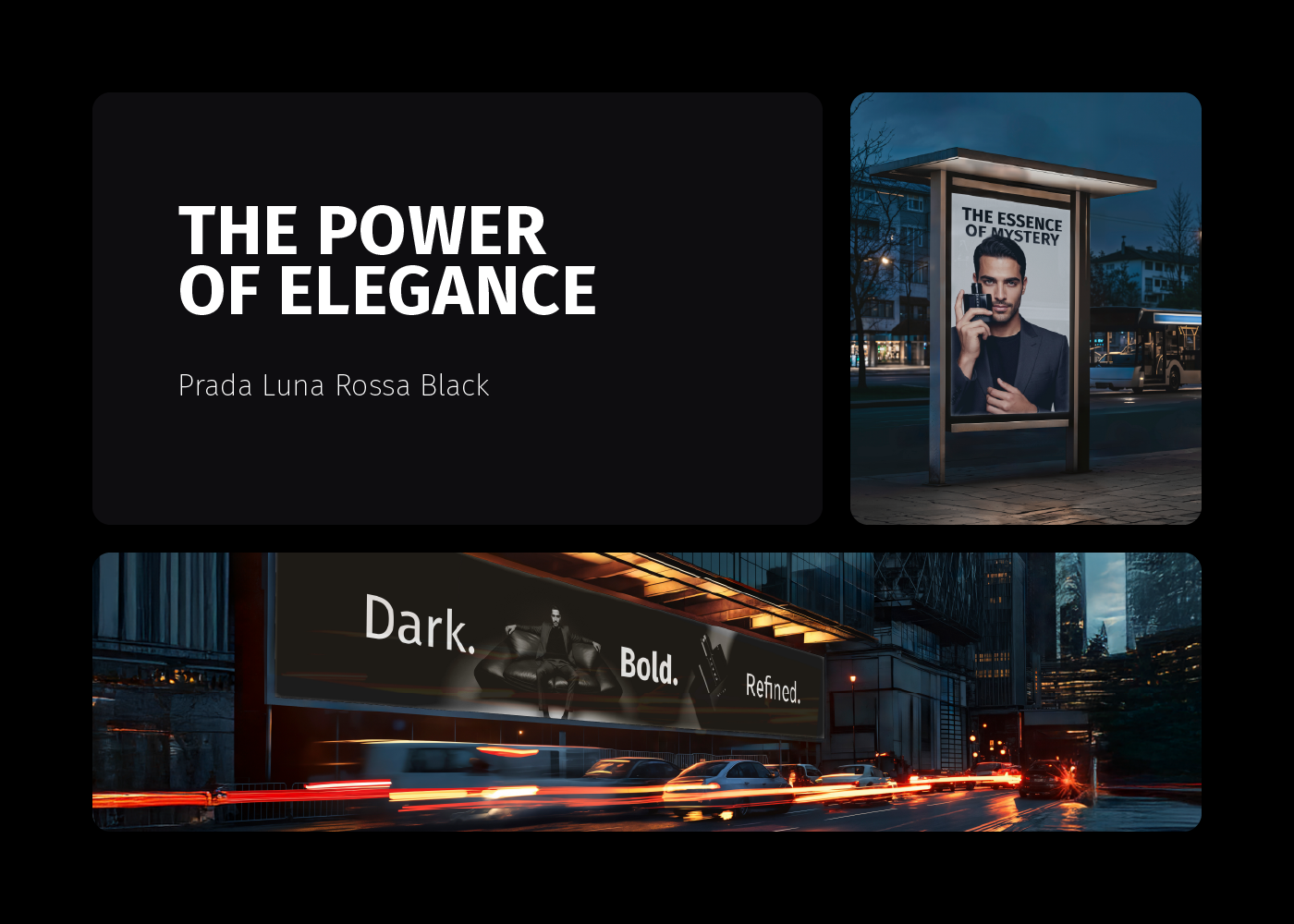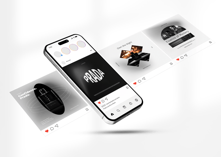 A fragrance that embodies elegance, warmth, and mystery. This visual campaign of 8 artistic concepts explores the identity of Prada Luna Rossa Black through bold contrasts, refined details, and a sophisticated lifestyle aesthetic. From close-up luxury shots to cinematic lifestyle scenes, the campaign captures the essence of a fragrance designed for the modern man — confident, charismatic, and timeless.