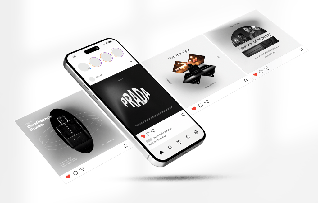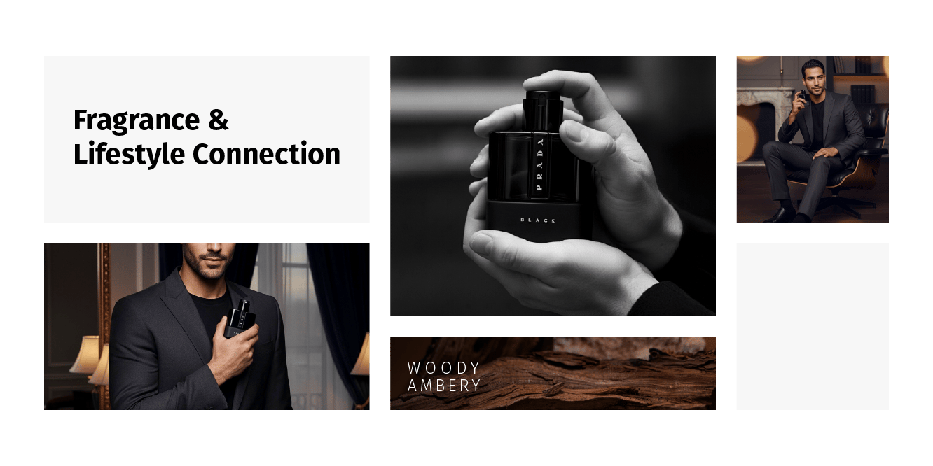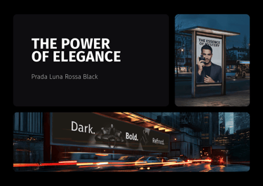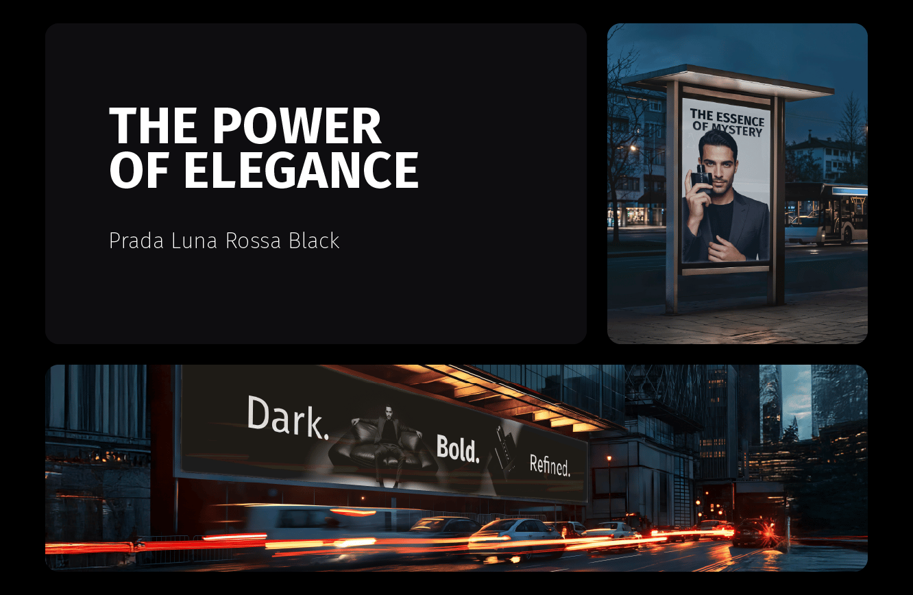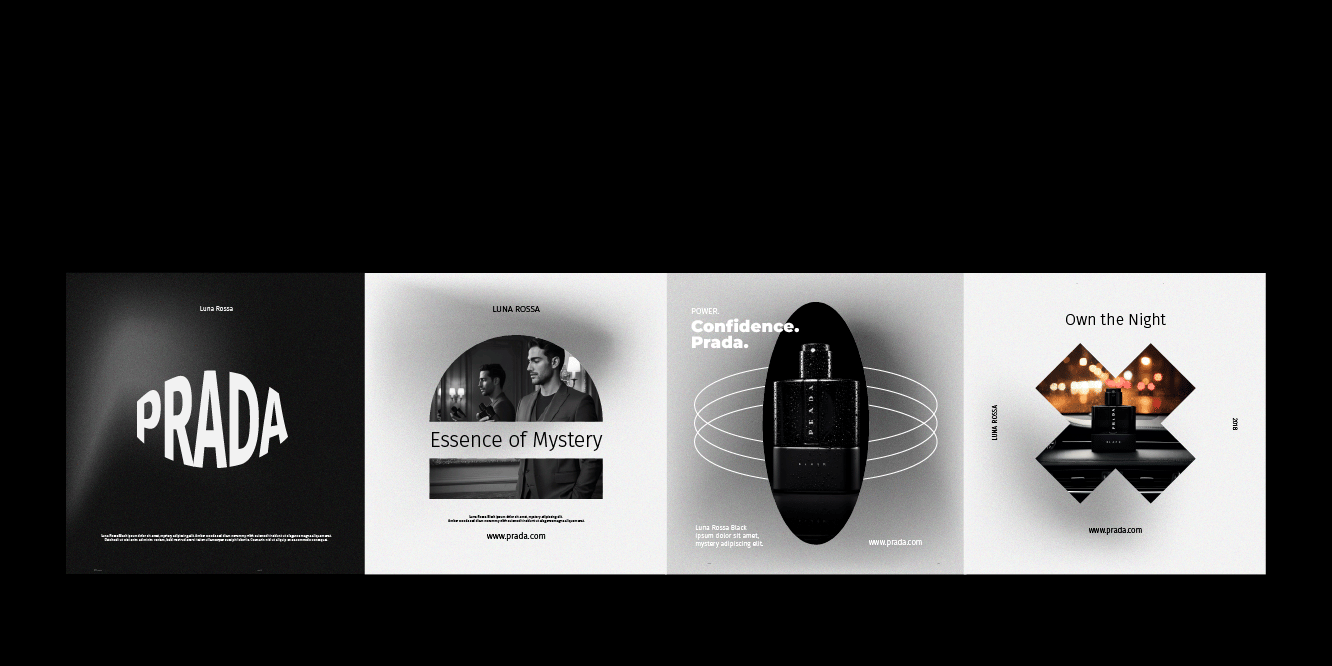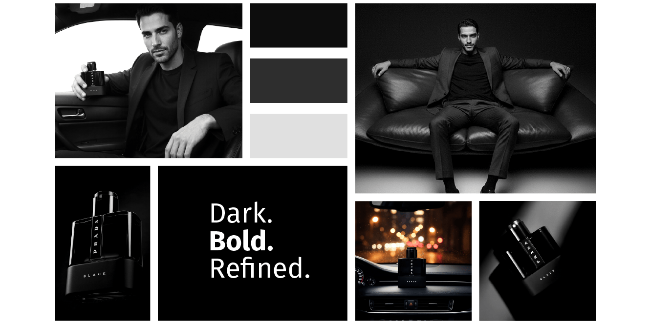 A fragrance that embodies elegance, warmth, and mystery. This visual campaign of 8 artistic concepts explores the identity of Prada Luna Rossa Black through bold contrasts, refined details, and a sophisticated lifestyle aesthetic. From close-up luxury shots to cinematic lifestyle scenes, the campaign captures the essence of a fragrance designed for the modern man — confident, charismatic, and timeless.